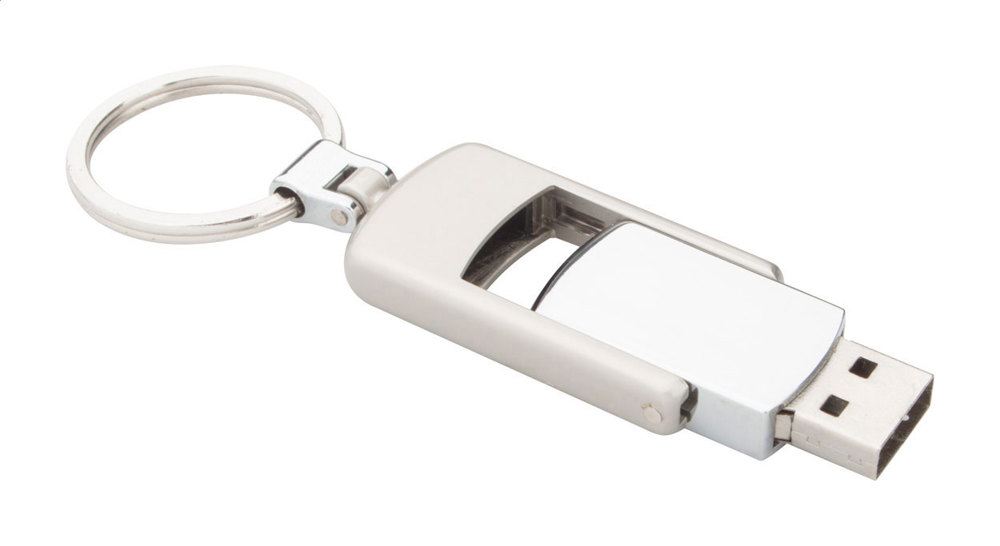 Opvouwbare metalen USB stick met sleutelhanger. Capaciteit 8/16/32 GB. USB 2.0.