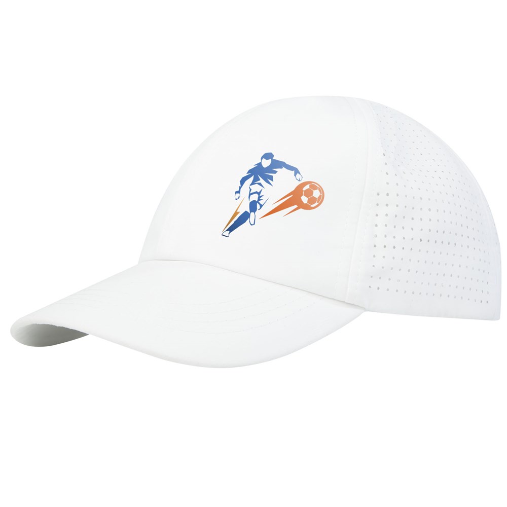 De Mica 6-panel GRS gerecycleerde cool fit cap is gemaakt van 110 g/m² GRS-gecertificeerd gerecycled polyester microvezel. De achterpanelen zijn voorzien van lasergeknipte gaten voor optimale ventilatie, zodat je koel en comfortabel blijft tijdens buitenactiviteiten. Ontworpen voor een comfortabele pasvorm met een hoofdomtrek van 58 cm, zorgt de metalen gesp voor gemakkelijke en veilige aanpassingen. De GRS-certificering garandeert een 100% gecertificeerde toeleveringsketen, van grondstof tot onze druktechnieken, waardoor het een duurzamere keuze is.