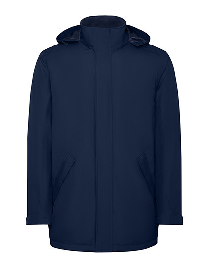 polstret parkajakke i stof | Høj krave med foldbar hætte og velcrolukning | Matchende central lynlås med klap | Sidelommer med lynlås og fast flap | Indvendig lomme med velcrolukning | Justerbare manchetter med velcrobæltestrop | Indvendig adgang til forstærkninger på ryggen og venstre bryst.