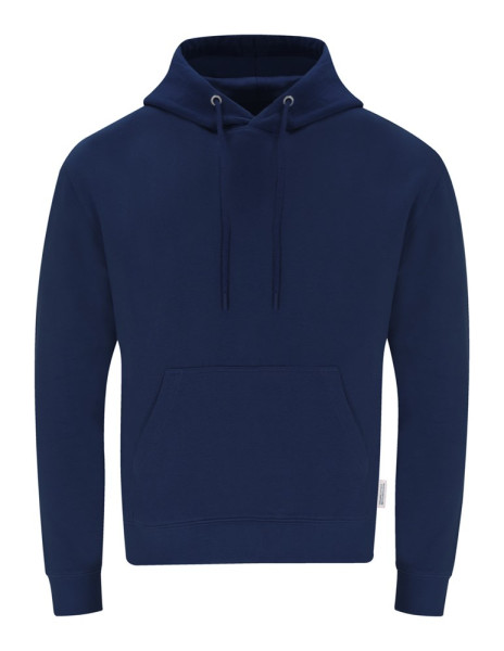 Sweatshirt met capuchon en voorzak van 60% biologisch katoen en 40% RPET polyester, 280 g/m2.