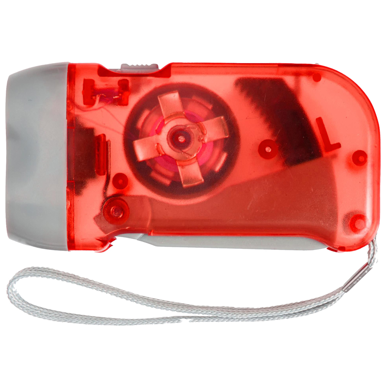 Frosted kunststof dynamo zaklamp met 2 LED lampjes en polskoord, incl. batterijen.