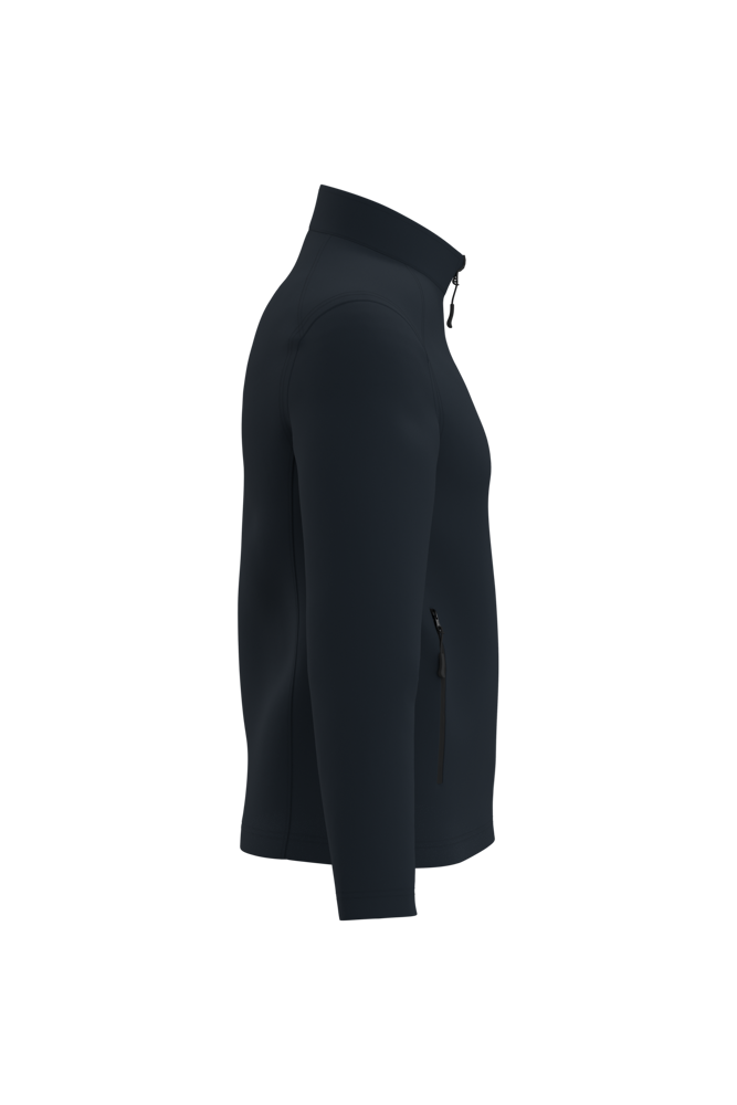 95% polyester / 5% elastaan. Softshell 2 lagen met waterafstotende behandeling. Binnenkant: zwarte microfleece van 100% polyester. Rechte snit. Opstaande kraag. Twee zijzakken met polytricot voering, nylonritsen en zwarte ritstrekkers. Ritssluiting in zwart nylon met kinbescherming en ritstrekker. Schouder- en rugstukken met sierstiksels. Zwarte nektape aan de binnenzijde. Mouwboorden en zoom afgwerkt met dubbele stiksels. Afneembaar merklabel.