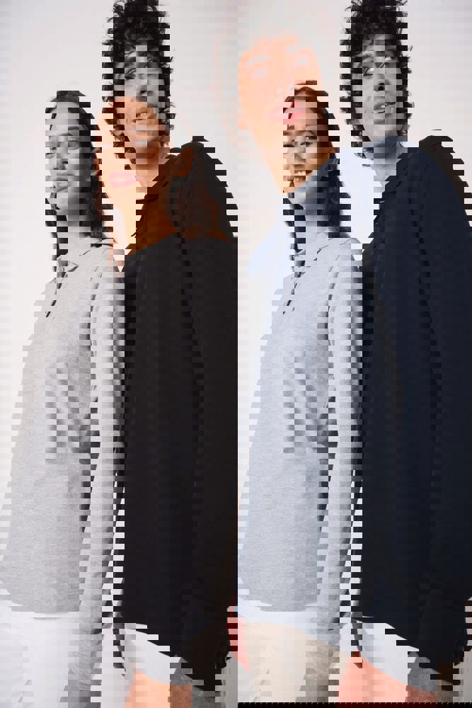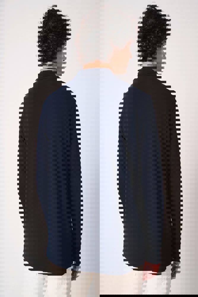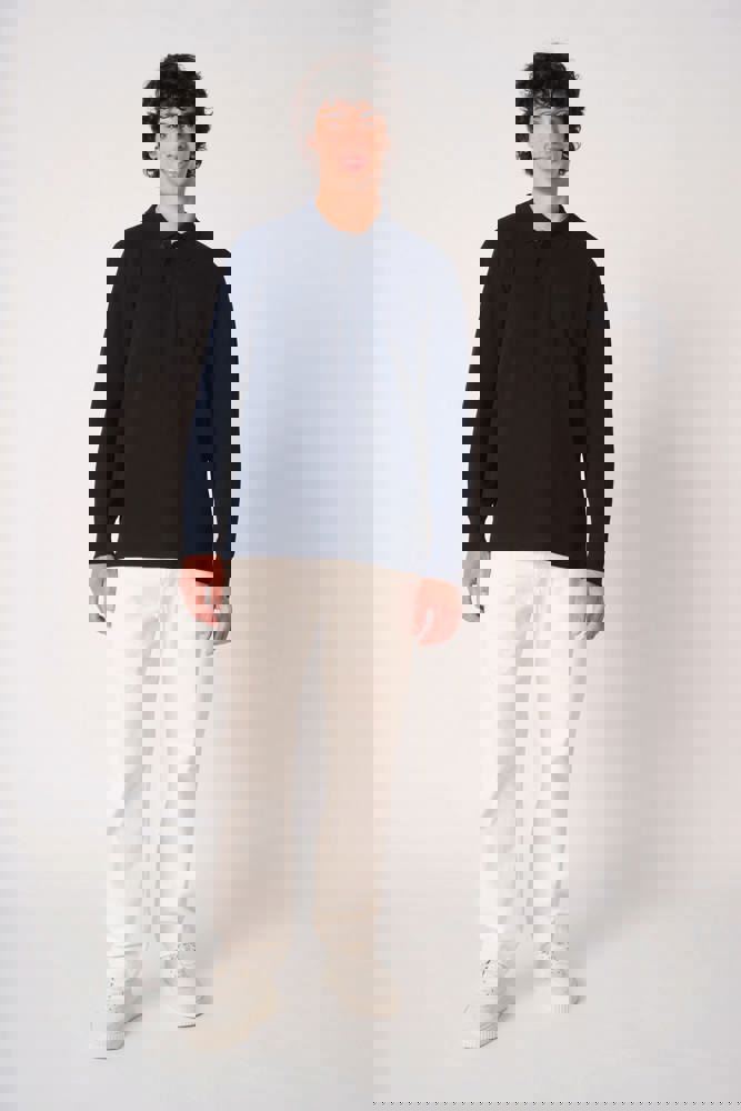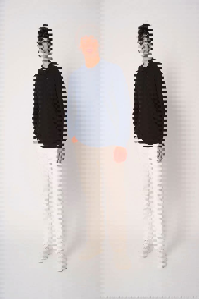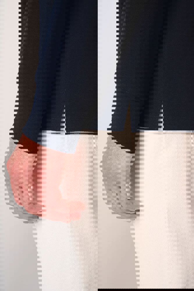 Effen kleuren: 100% katoen. Kleur Ideal Oxford Grey: 90% katoen / 10% viscose. Piqué breisel.Rechte snit. Kraag en mouwboorden in 1x1 ribboordafwerking. Sluiting met drie toon-op-toon knopen. Toon-op-toon nektape aan de binnenzijde. Zijsplitten. Zoom afgewerkt met dubbele stiksels. Afneembaar merklabel.