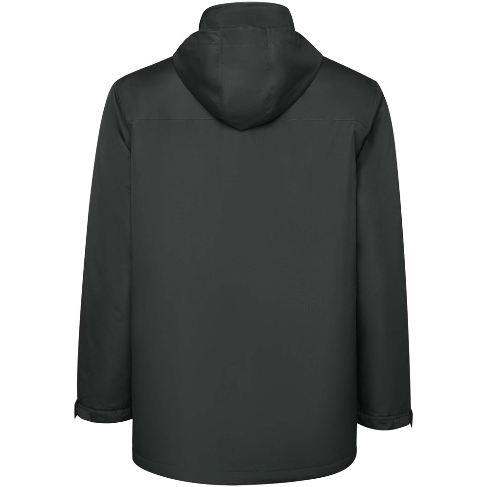 Waterdichte gewatteerde parkajack voor heren. Hoge kraag met omgeslagen en afneembare capuchon...meer