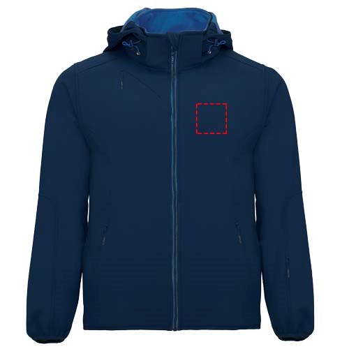 Tweelaags softshell in sportieve pasvorm. Contrasterende centrale rits met kinbeschermer en trekker. Binnenvoering van contrasterende microfleecestof. Buitenzak op de rechterborst met onzichtbare rits in diagonale vorm. Twee zijzakken met onzichtbare rits. Zak op de linkermouw. Bijpassende elastische bies in manchetten en zoom. Opvouwbare capuchon met contrasterende micropolaire voering. Verwijderbaar etiket. Waterbestendig. Winddicht. Het mannelijke model is 185 cm en draagt maat M en het vrouwelijke model is 174 cm en draagt maat S.