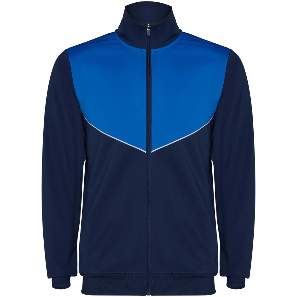 Trainingspak van lichtgewicht en elastische stof. Jack met contrasterende kleur en stiksels op de...meer