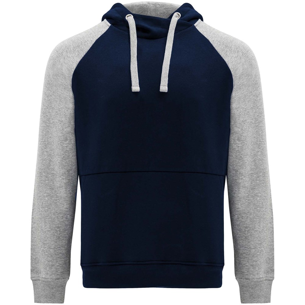 Tweekleurige unisex hoodie. Capuchon met gekruiste hals en metalen oogjes. Contrasterende binnenkant van de capuchon, trekkoord en raglanmouwen. Kangoeroezak. Manchetten en zoom van 1x1 ribgebreid elastaan. Verwijderbaar label.