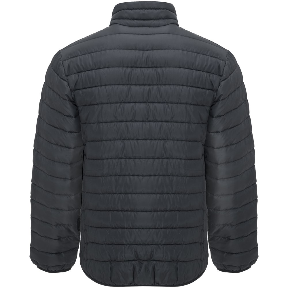 Gewatteerd herenjack met dons. Omgekeerde ritsen met bijpassende kinbeschermer en trekker. Twee voorzakken met rits. Bijpassende elastische rand in kraag, manchetten en zoom. Contrasterende binnenvoering. Inclusief opbergtas. Lichtgewicht en opvouwbaar kledingstuk. Verwijderbaar etiket. Waterafstotend. Winddicht. Het model is 184 cm en draagt maat L.