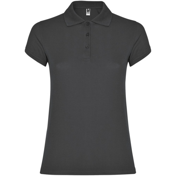 Poloshirt met korte mouwen voor dames. Versterkte bedekte naden in de binnenkant van de kraag. 1x1 geribde kraag en manchetten. Zijnaden en aansluitende snit. Smalle sluiting met drie knopen. Zijsplitten. Verwijderbaar etiket. Het model is 179 cm en draagt maat S.