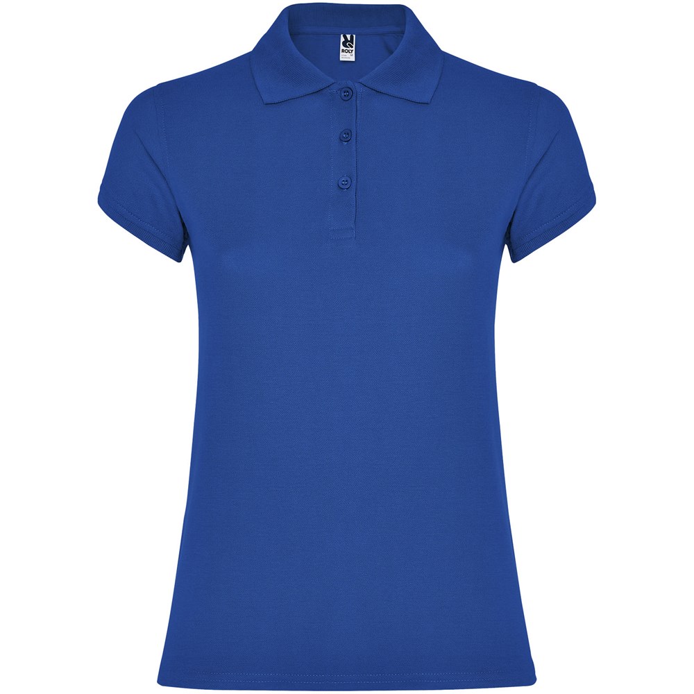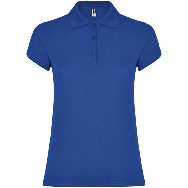 Poloshirt met korte mouwen voor dames. Versterkte bedekte naden in de binnenkant van de kraag. 1x1 geribde kraag en manchetten. Zijnaden en aansluitende snit. Smalle sluiting met drie knopen. Zijsplitten. Verwijderbaar etiket. Het model is 179 cm en draagt maat S.
