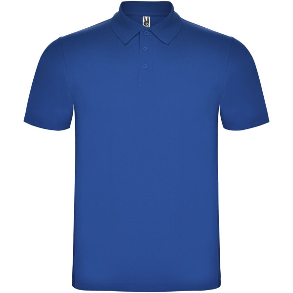 Poloshirt met korte mouwen, sluiting met drie knopen en 1x1 geribde kraag. Versterkte bedekte naden in de kraag. Verwijderbaar etiket. Het model is 190 cm en draagt maat L.