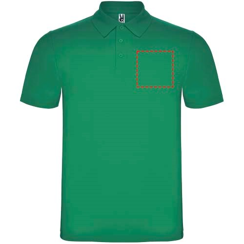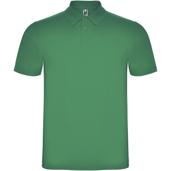 Poloshirt met korte mouwen, sluiting met drie knopen en 1x1 geribde kraag. Versterkte bedekte naden in de kraag. Verwijderbaar etiket. Het model is 190 cm en draagt maat L.
