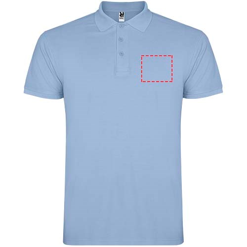 Poloshirt met korte mouwen voor kinderen. Versterkte bedekte naden in de binnenkant van de kraag. 1x1 geribde manchetten en kraag. Zijnaden. Knoopsluiting met drie knopen en zijsplitten. Optionele zak. Verwijderbaar etiket. Het model is 124 cm en draagt maat 5/6.