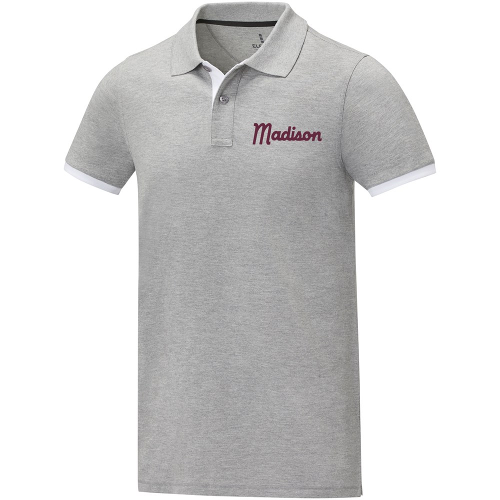De Morgan duotone herenpolo met korte mouwen is een stijlvolle en comfortabele optie voor elke casual of zakelijke omgeving. Gemaakt van een 200 g/m2 piqué gebreide katoenen stof, is deze polo zowel duurzaam als ademend. Deze polo heeft een platte gebreide kraag en ribboorden met contrastkleurige details en geeft een moderne draai aan een klassiek ontwerp. De knoopsluiting met twee knopen en de stikdetails voegen een extra vleugje verfijning toe, en de satijnen nekband en het heat transfer hoofdlabel zorgen voor comfort en draaggemak.