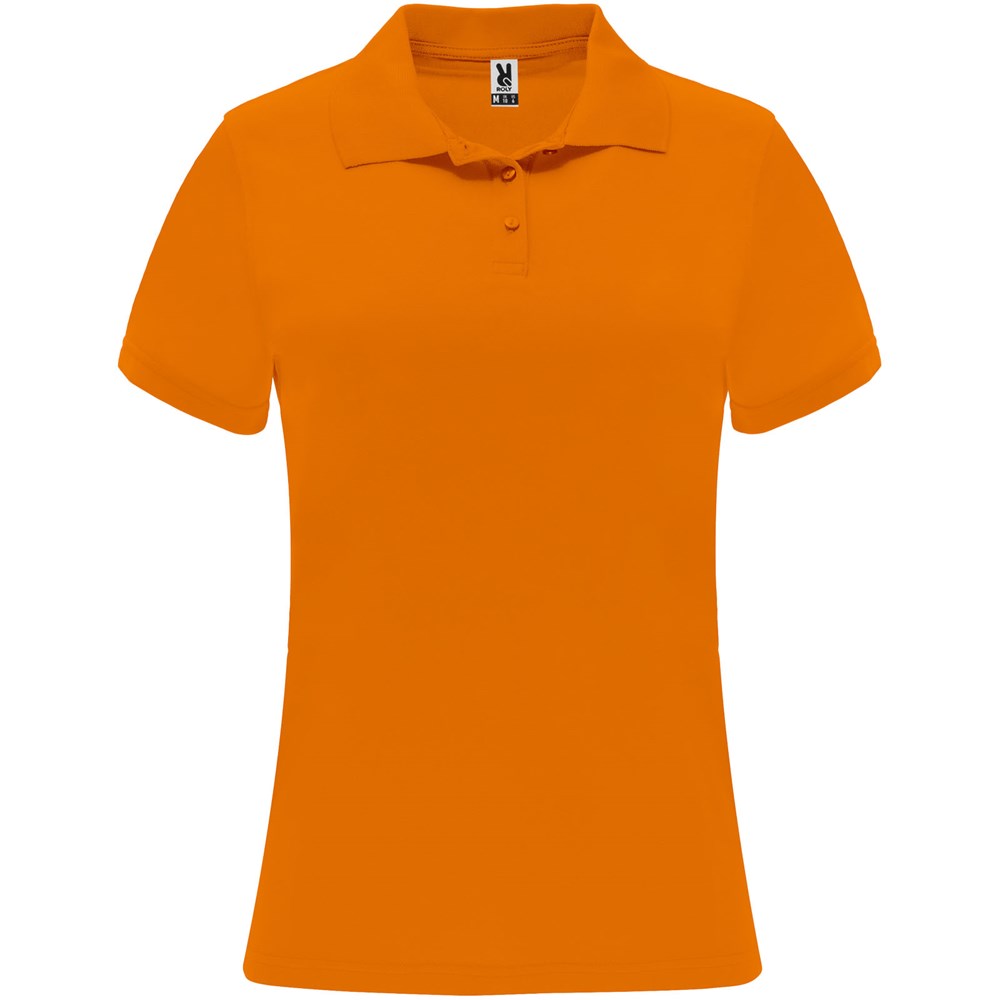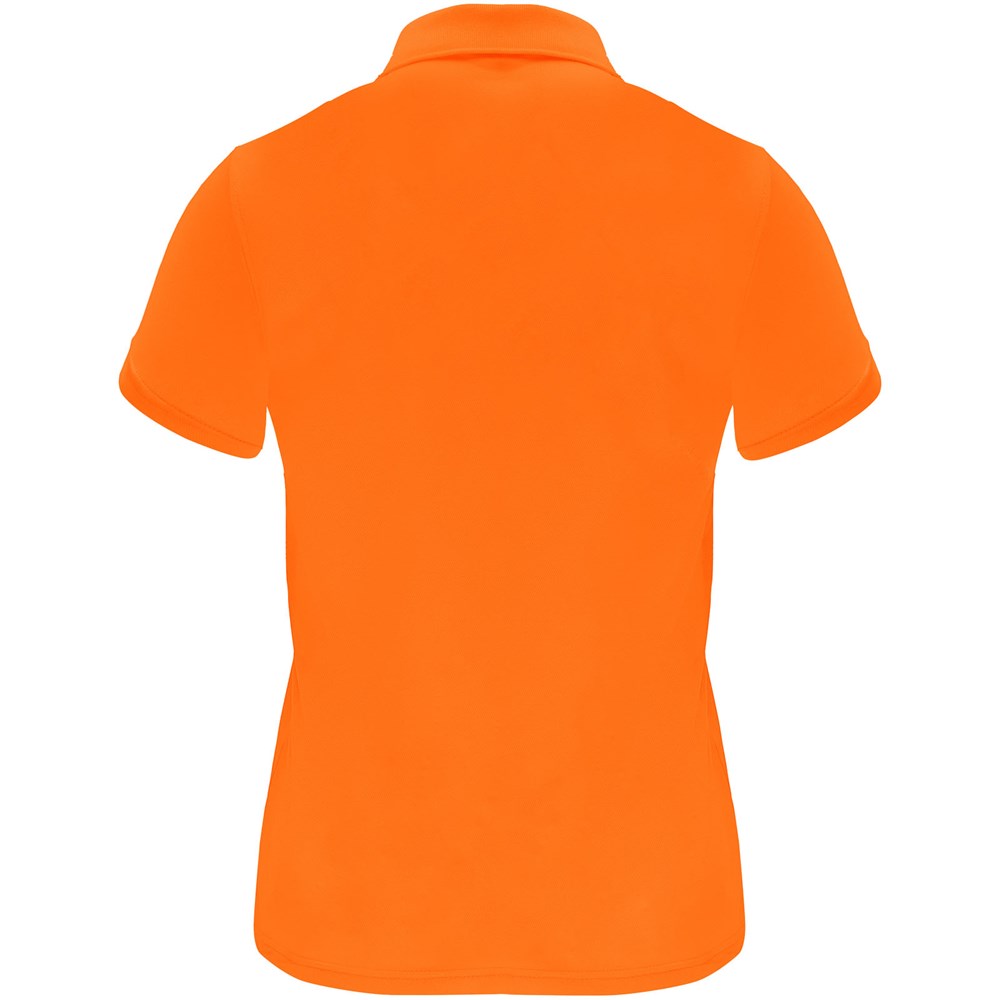 Technisch poloshirt met korte mouwen voor dames. Gebreide kraag met sluiting met drie knopen. Getailleerde snit. Ademende, gemakkelijk wasbare en droge stof. Verwijderbaar etiket. Technische stof. Ademende stof. Het model is 173 cm en draagt maat S.