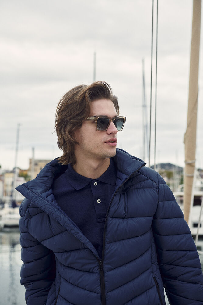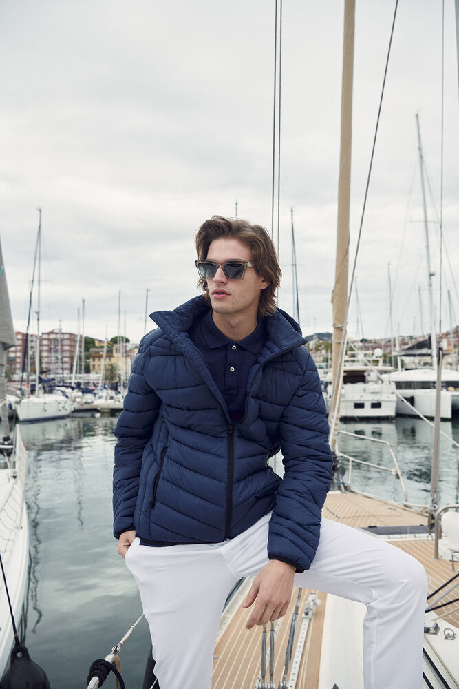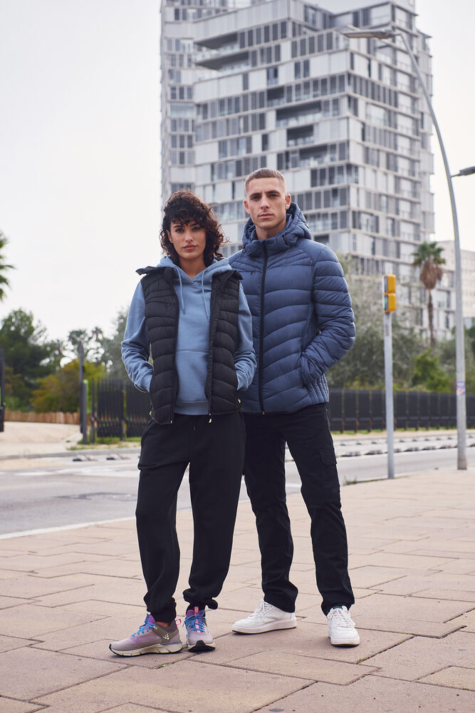 Een warm en toch lichtgewicht jack met donsachtige vulling gemaakt van 100% gerecycled polyamide. Voorzien van twee zijzakken en borstzak met rits en twee binnenzakken. De boord en mouwen zijn afgewerkt met een elastische band. Het jack heeft een afneembare capuchon. Afgewerkt met doorvoer voor koptelefoon, ophanglusje in de nek en zipper puller in een contrasterende kleur.