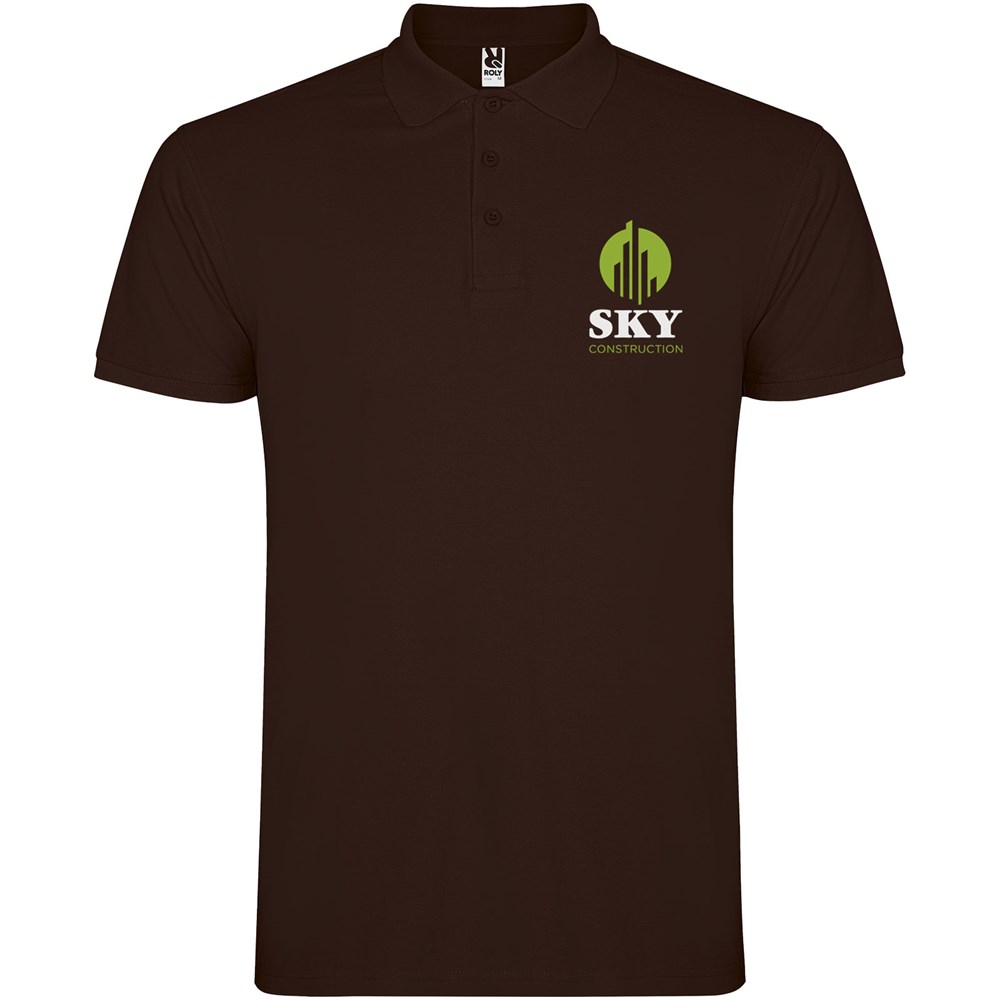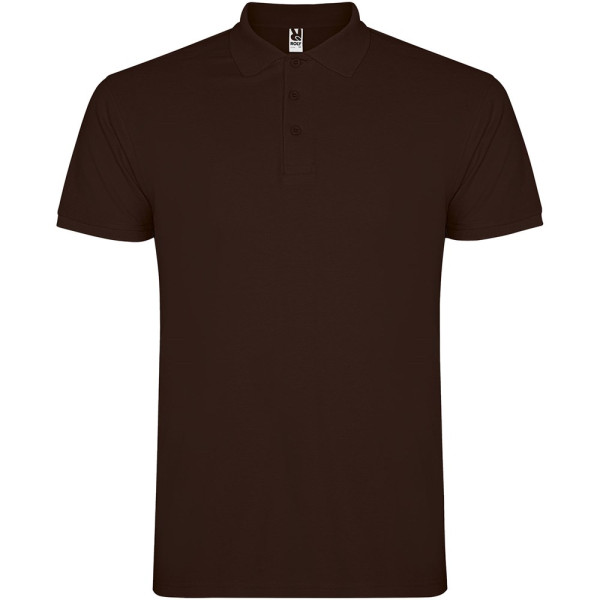 Poloshirt met korte mouwen voor heren. Versterkte bedekte naden in de binnenkant van de kraag. 1x1 geribde manchetten en kraag. Zijnaden. Knoopsluiting met drie knopen en zijsplitten. Optionele zak. Verwijderbaar etiket. Het model is 185 cm en draagt maat L.