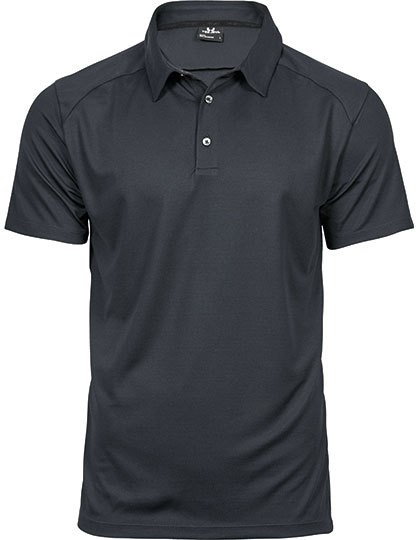 Polyester CoolDry | Getailleerde pasvorm | Gevoerde kraag in identiek geweven stof | Plat gebreide kraag | Antraciet contrast knoppen | Vochtafvoerende afwerking | Knopen met “Tee Jays”- branding