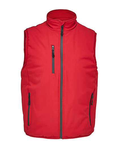 Softshell 270 | 3 lagen | Polarfleece voeringgerecycled polyester | Winddicht | Waterdicht en ademend membraan van 5000 mm | Volledig gewatteerde bodywarmer | Met fleece gevoerde hoge kraag | Hoofdopening, zij- en borstzakken met zwarte waterdichte nylon ritssluiting | 3 binnenzakken | Ritssluiting voor maatwerk | Elastische biaisband in dezelfde kleur bij de armsgaten en onderkant | Scheurlabel