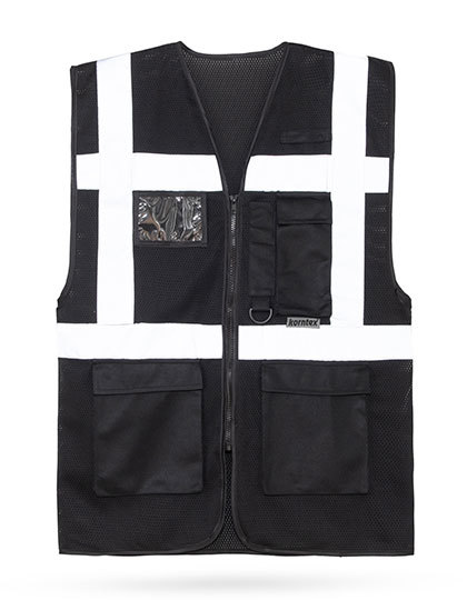 Multifunctioneel vest uit gaas met hoge zichtbaarheid, ritssluiting en zakken | Comfortabel, zelfs bij hoge temperaturen, dankzij de netstof en een losse pasvorm | Twee reflecterende strepen rond het lichaam en over de schouders, elk 5 cm breed, voor goede zichtbaarheid | Met verschillende zakken en een D-ring | Gecertificeerd volgens EN ISO 20471