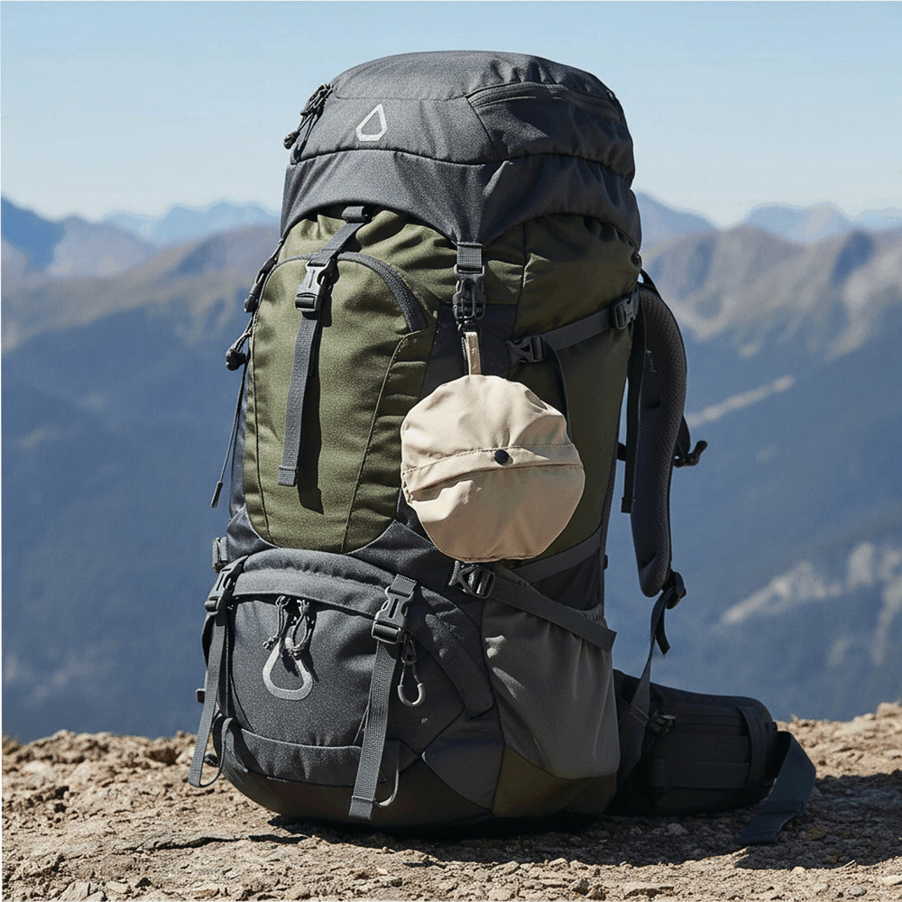 Opvouwbare vissershoed SHADEGO: waterafstotend, hoed kan met behulp van een drukknoop tot een tasje worden omgevormd, met karabijnhaak (de karabijnhaak is NIET geschikt als beveiliging bij het klimmen)