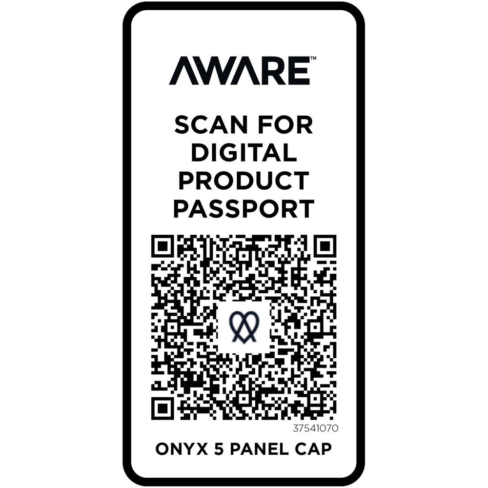 De Onyx 5 panel cap is gemaakt van 70% gerecycled katoen en 30% gerecycled polyester. Hij is ontworpen voor een comfortabele pasvorm met een hoofdomtrek van 58 cm en de metalen gespsluiting zorgt voor eenvoudige, veilige aanpassingen. De cap bevat Cyclo® gerecyclede vezels waarbij voorgesorteerd afval wordt gebruikt dat de kleur van het garen bepaalt. Deze vezels verminderen niet alleen de vraag naar nieuwe grondstoffen, maar tonen ook een engagement voor een circulair leven, waarbij ze de essentie belichamen van het verminderen van afval en het bevorderen van een gesloten kringloopsysteem. Elke cap wordt ook geleverd met een Aware™ tracer. Met deze innovatieve functie kunnen gebruikers de oorsprong en de reis van hun artikel volgen via een QR-code, waardoor de transparantie in de toeleveringsketen wordt vergroot en er een sterkere band is tussen het product en het productieproces.