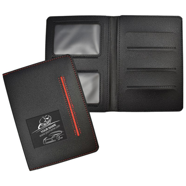Kenteken-/rijbewijsetui 1117, zwart - rood, met vakje