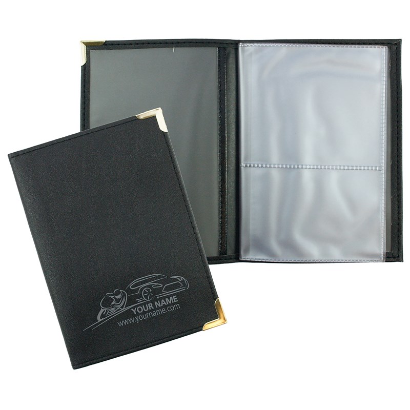Rijbewijsetui skai met transparante pagina’s in de omslag en drie transparante pagina’s, dus veel ruimte voor uw papieren. Met goudkleurige hoekjes aan de voorzijde.