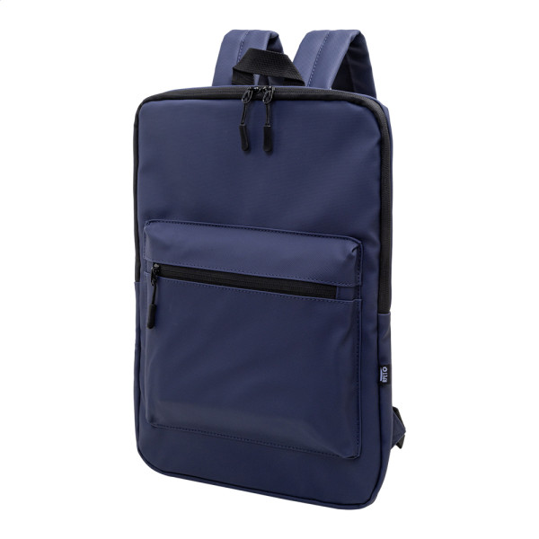Waterdichte RPET slanke laptoprugzak met laptopvak met rits (15") en voorvak met rits. Met gewatteerde rug en schouderbanden. PU gecoat 600D RPET polyester, met onderscheidend RPET-label.