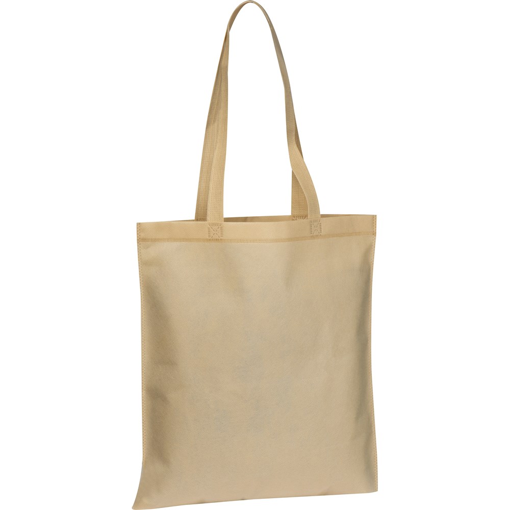 Non woven tas van 80gm2, stevig gestikt en lange draagriemen. Uw reclame wordt op de tas gedrukt