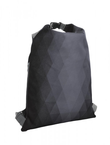 lichte, innovatieve rugzak met ruitjesdecor; aan beide kanten draagbaar; hoofdcompartiment met ritssluiting en extra omslagfunctie; zijdelingse zak met ritssluiting; geweven, in lengte verstelbare schouderriem