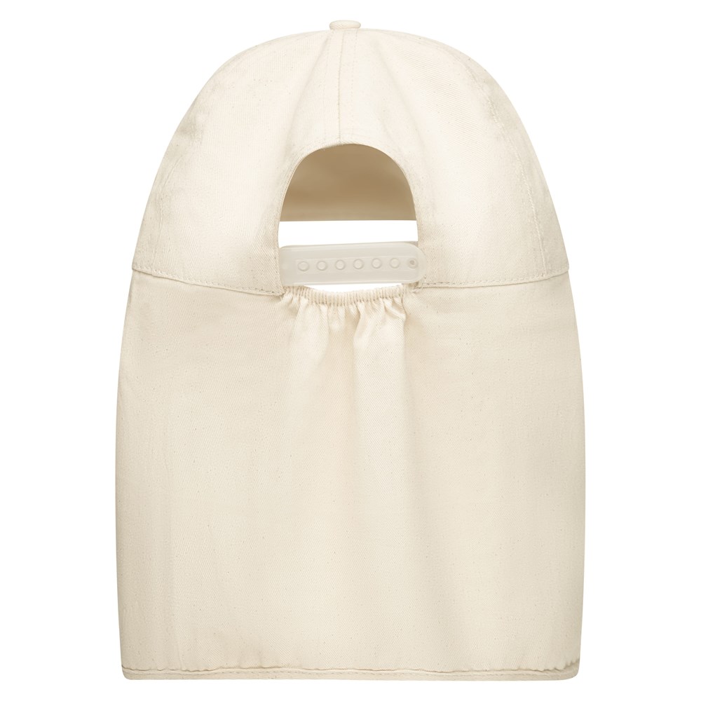 Een cap voor lange wandeltochten in de brandende zon. Deze cap beschermt niet alleen je gezicht, maar ook je nek en oren. Met plastic druksluiting en vijf panelen.