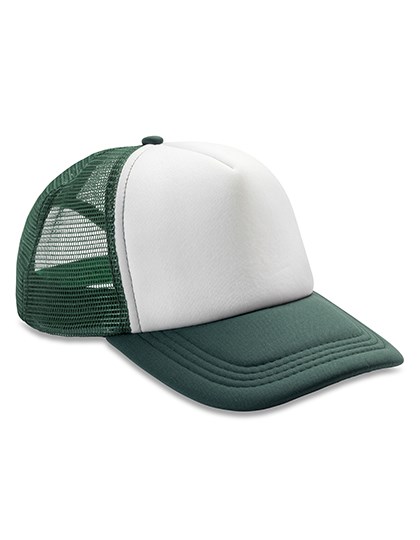 Gewatteerde polyester | 5-panelen - 4 van gaas & 1 effen stof | Wit voorpaneel met contrastgaas in kleur en klep | Snapback-regelaar | Half gebogen stof piek | Afscheurbaar etiket