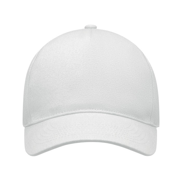 5 panelen baseballpet in zwaar geborsteld twill katoen 260 gr/m² met zilverkleurige stalen gesp. 4 geborduurde oogjes in bijpassende kleur. Maat 7 1/4.