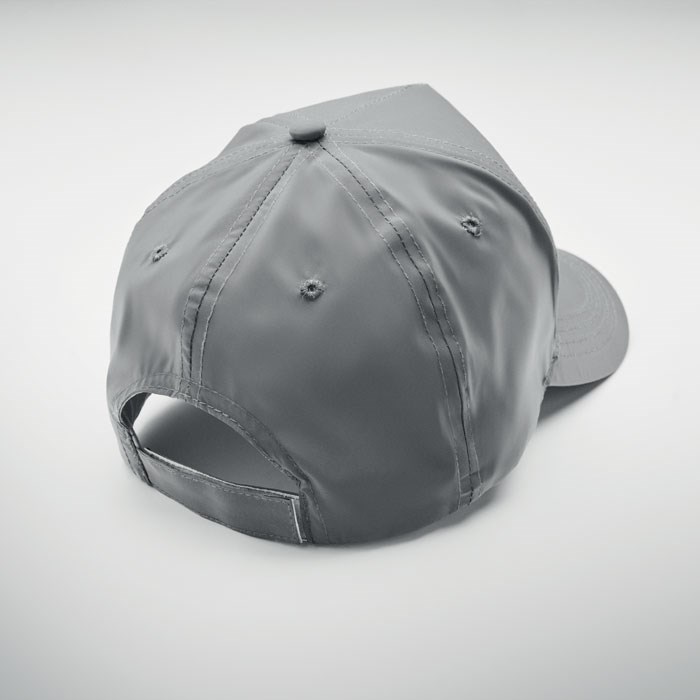 Baseballpet met 5 panelen van hoog reflecterend 190T polyester. Voorzien van 4 geborduurde oogjes en klittenbandsluiting. Maat 7 1/4.