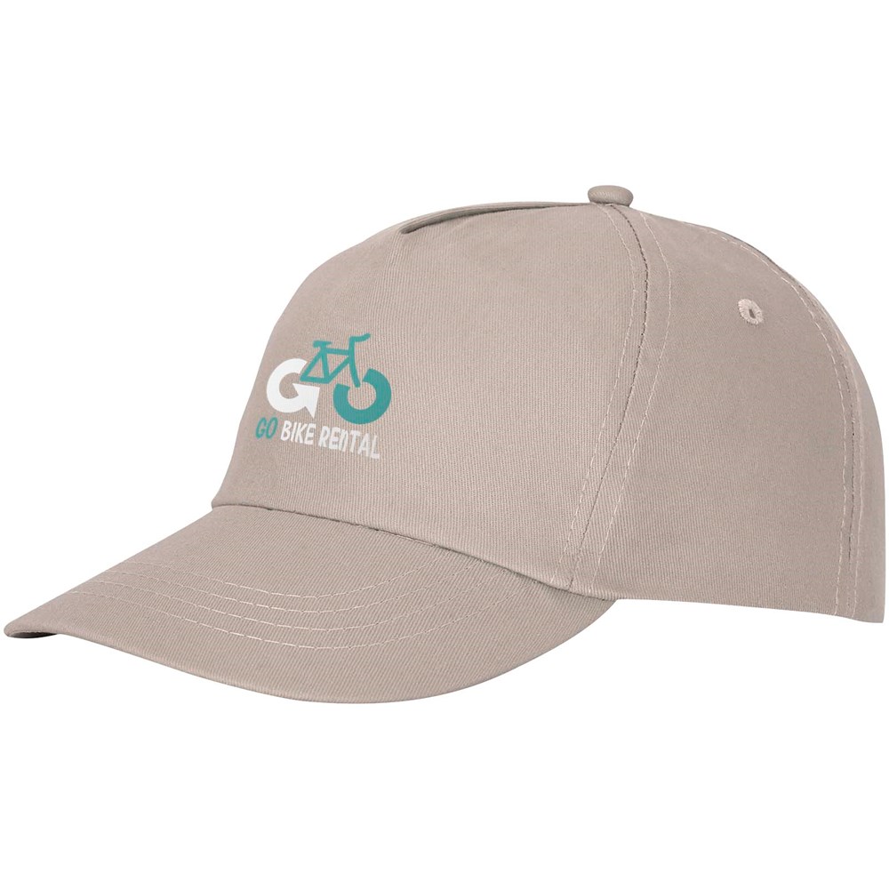 De Feniks 5-panelen pet heeft geborduurde oogjes voor verbeterde ventilatie, zodat je koel en fris blijft tijdens elke activiteit. Met een hoofdomtrek van 58 cm biedt hij een comfortabele pasvorm voor verschillende hoofdmaten. De stoffen klittenbandsluiting kan moeiteloos worden versteld voor de perfecte pasvorm. De Feniks pet is gemaakt van 175 g/m² katoenen keperstof en combineert duurzaamheid met een zacht, ademend gevoel.