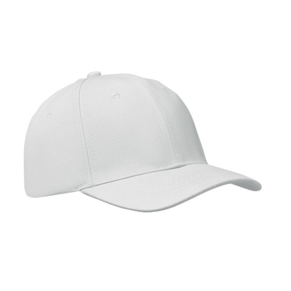 Baseballpet met 6 panelen van geborsteld katoen 260gr/m² met zilverkleurige stalen gesp en 6 geborduurde oogjes in bijpassende kleur. Maat 7 1/4.