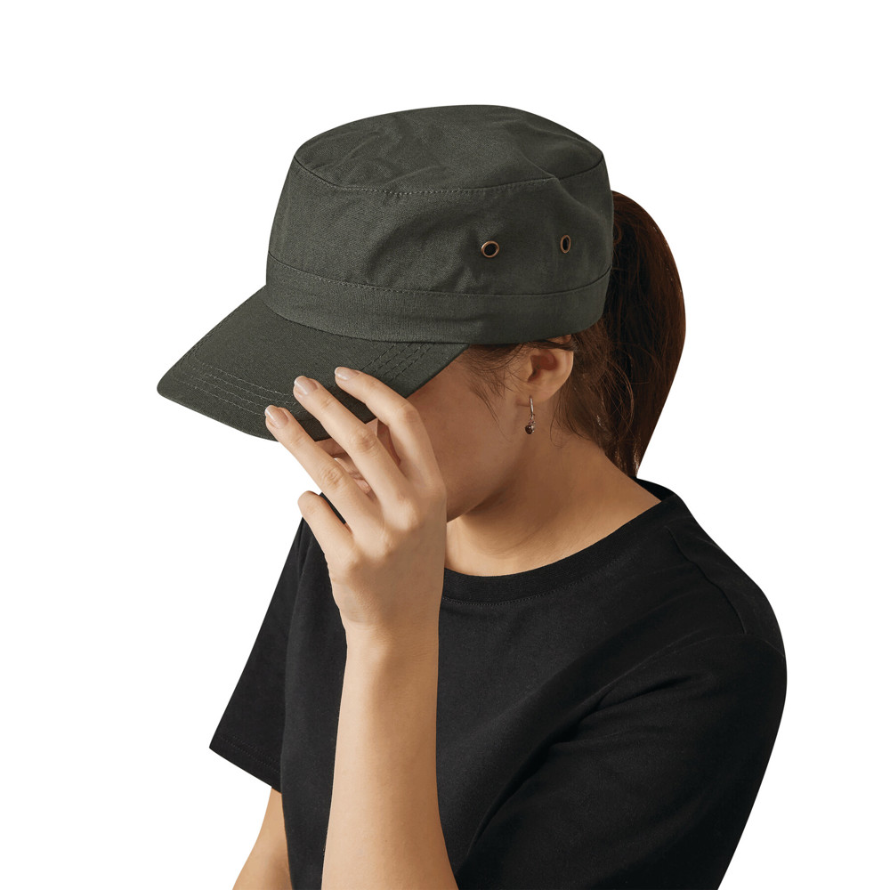 Cap SOLDIER met 4 koperen "ogen" en koperen clip sluiting.