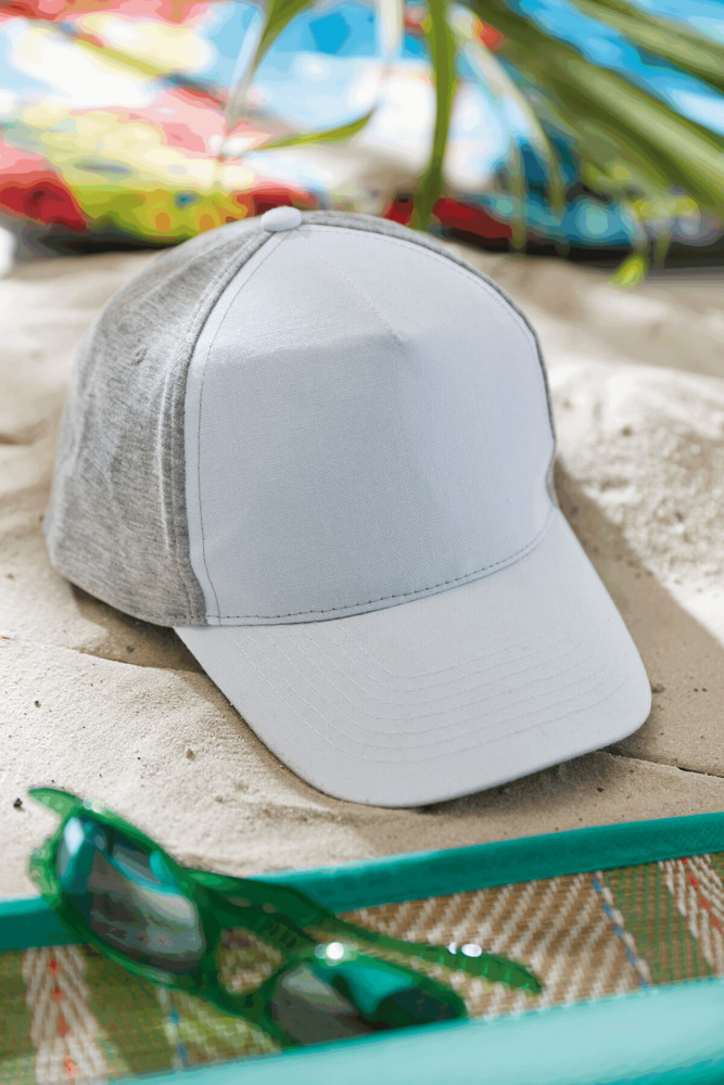 5-panel baseballcap UP TO DATE met front en klep in canvas-look. Overige panelen van jersey-materiaal en verstelbare klittenbandsluiting aan de achterzijde.