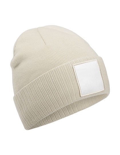 Gerecycleerd polyester | Dubbellaags gebreid | Katoenen keperstof (5 x 5 cm) ter versiering | Voering van microfleece voor comfort en warmte | Afscheurbaar etiket