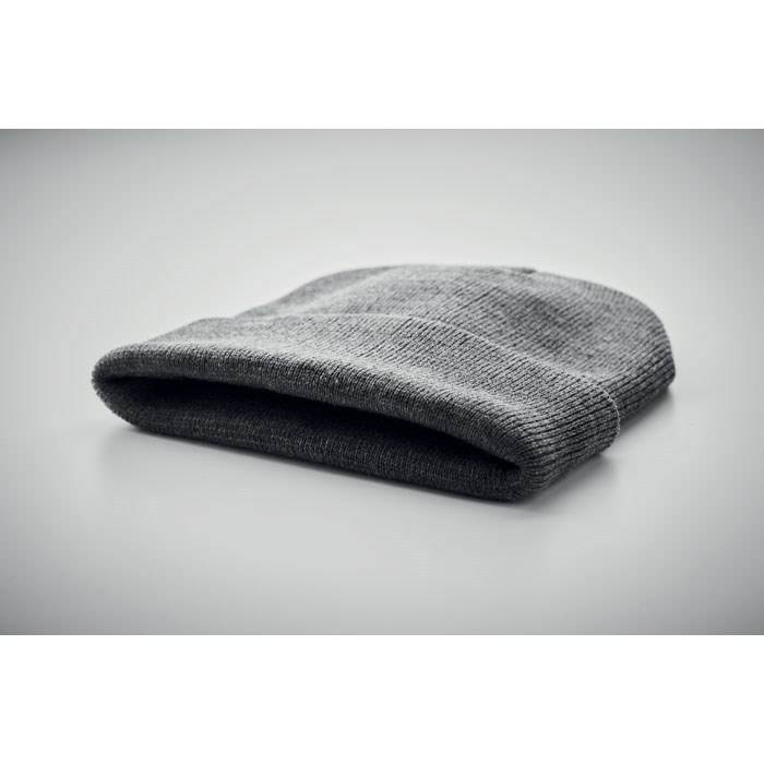Gebreide uniseks beanie met omslag van zachte stretch RPET polyester.meer