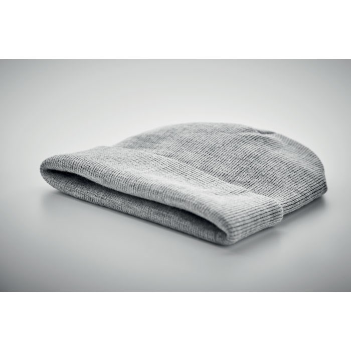 Gebreide uniseks beanie met omslag van zachte stretch RPET polyester.meer