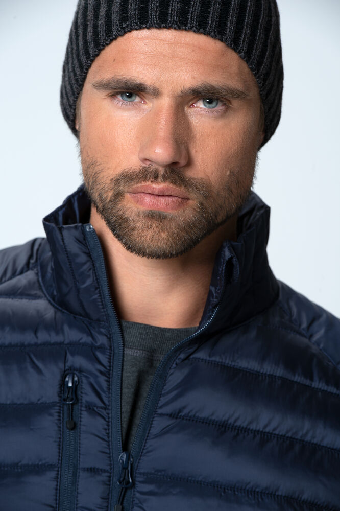 Opvallende gewatteerde jas met eigentijds design en een moderne pasvorm. De jas is zorgvuldig afgewerkt met elastiek in de boord en onderaan de mouwen, zijpanelen van softshell, necktape en ritsen. De jas is voorzien van twee steekzakken met rits, een borstzak met rits en binnenzakken. Deze moderne jas zorgt voor een professionele en eigentijdse uitstraling. Ideaal voor degene die op subtiele wijze op wil vallen.