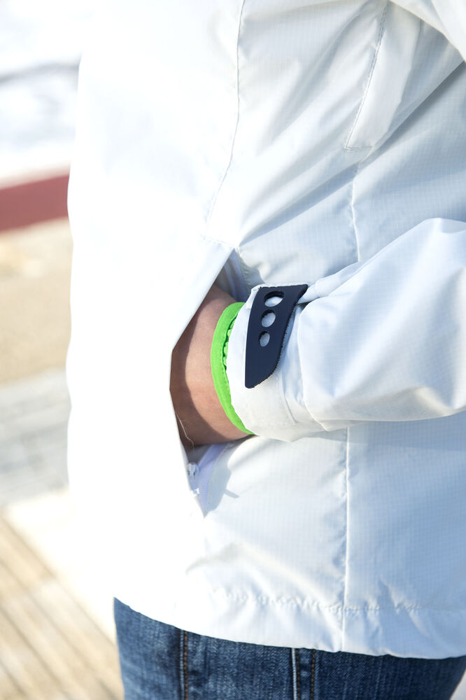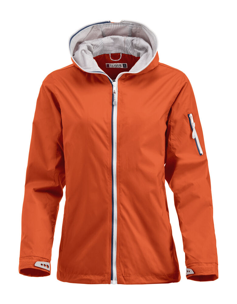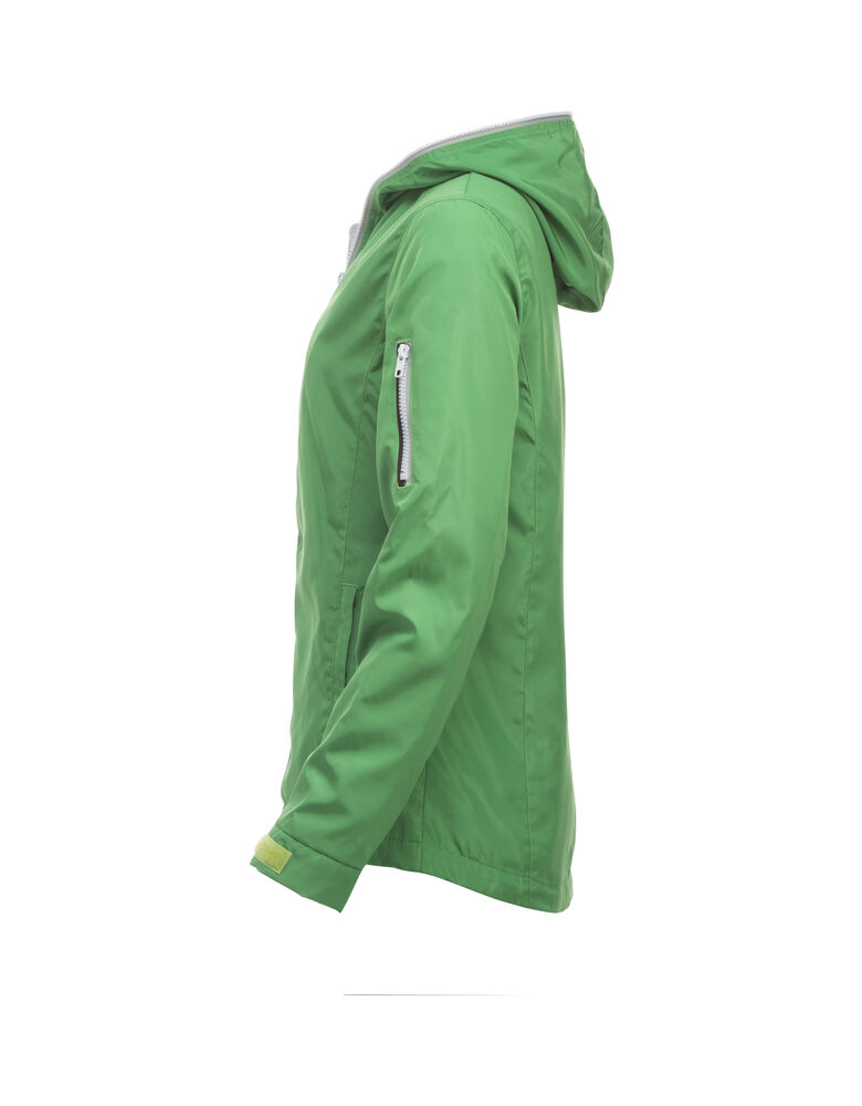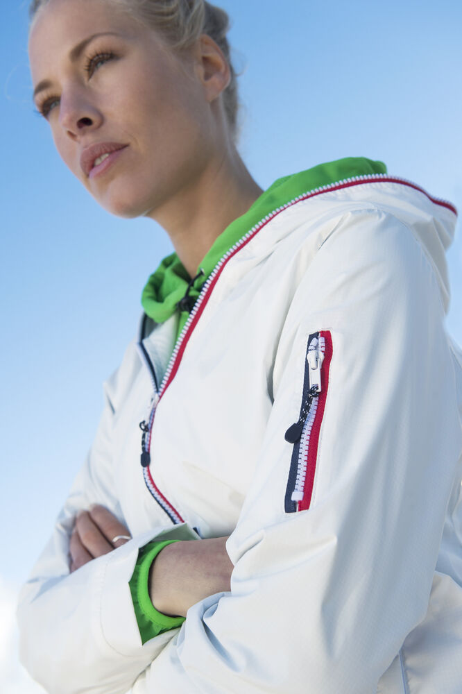 Opvallende, lichtgewicht jas met rits die tot en met de capuchon dicht kan. De jas is uitgerust met opvallende contrasterende strepen die langs de rits lopen voor een unieke, opvallende uitstraling. De jas is gemaakt van hoogwaardig ripstop polyester met PU coating ter bescherming bij regenachtig weer. De jas is gemakkelijk te veredelen dankzij de drukkersrits aan de binnenzijde.