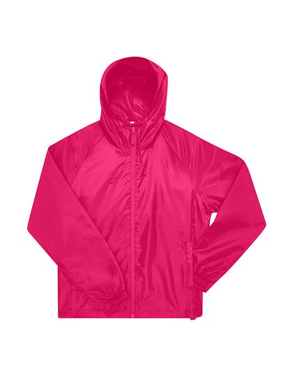 Gerecycleerd polyester 210T tafzijde | Duurzame waterafstotende coating (DWR) | Zonder PFAS/fluor | Raglanmouwen | Verstelbare capuchon in 3 delen met trekkoord | Semi-elastische mouwen | Waterbestendig | 2 voorzakken | Verpakbaar in zak met rits | Geen etiket