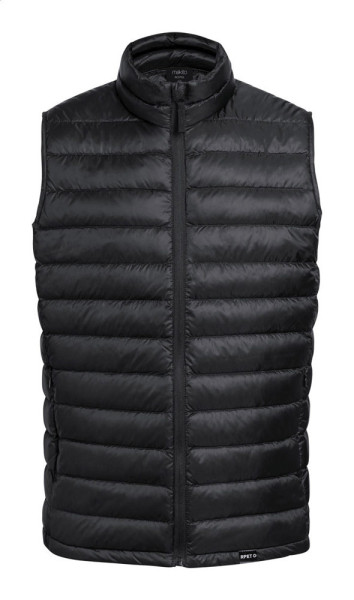 Wind- en waterafstotende bodywarmer van 100% RPET polyester.