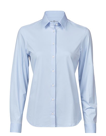 Stretch in vier richtingen | Getailleerde pasvorm | Wijde kraag | Modern gevormde manchetten | Ingezet stuk in achterpand | Makkelijk in onderhoud