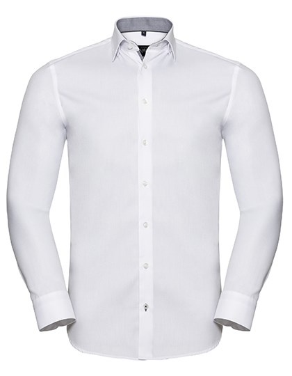 Russell Athletic Collection - Men's Long Sleeve Tailored Contrast Herringbone Shirt