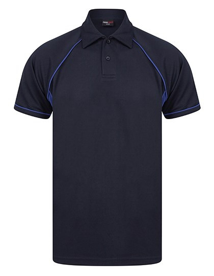 Sportieve pasvorm | Minimaal strijken | Contrasterende biezen langs raglannaden en op voor- en achterkant | Knopenlijst met 2 knopen | Kraag in zelfde stof, raglanmouwen | CoolPlus® vezels en garens zorgen voor vochtafvoer, ademend vermogen en sneldrogende eigenschappen
