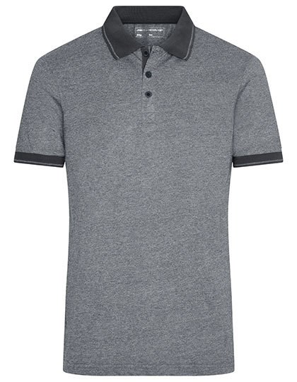 Gemêleerd poloshirt met modieuze details | Fijne single jersey | Sportieve snit | Gebreide polokraag en mouwbanden met contrasterende strepen | 3 knopen